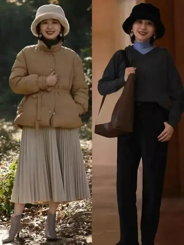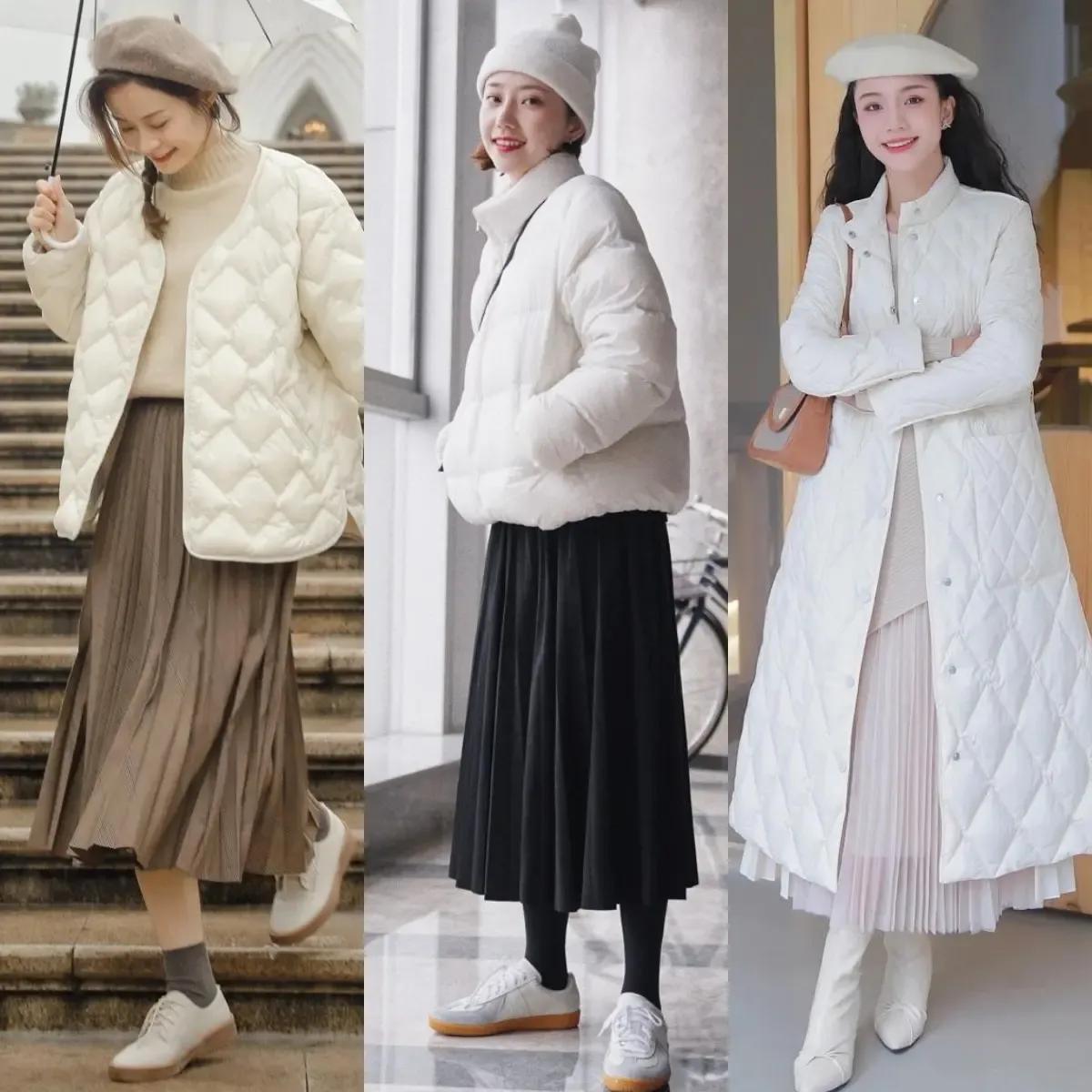 大家看下面这三位素人博主的穿衣造型是有所不同的,如果长相比较甜美可爱的情况下,你可以用短款羽绒服搭配上鸭子半身裙,脚踩一双小白鞋,运动鞋,头上戴了一款贝雷帽或者是针织帽,使得穿搭者比较俏皮甜美。