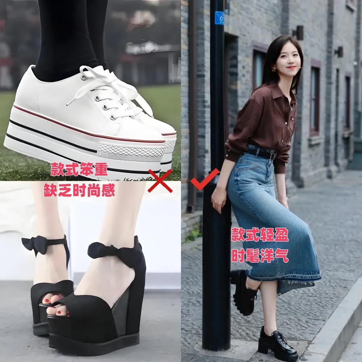 有的时候对于小个子女性就为了增高身高,1到2厘米或者是3到5厘米,选择了款式,笨重厚底鞋来搭配,其实真的没有必要穿在脚上,之后缺乏时尚感,就算要选择增高的鞋子,也一定要选对款式才行,例如右边的这张图片穿搭的黑色乐福鞋款式轻盈,时尚洋气。